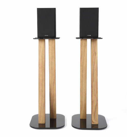 EXIMUS One Pair Fixed Height Universal Speaker Floor Stands with Real Wood - Oak - 290 Series
