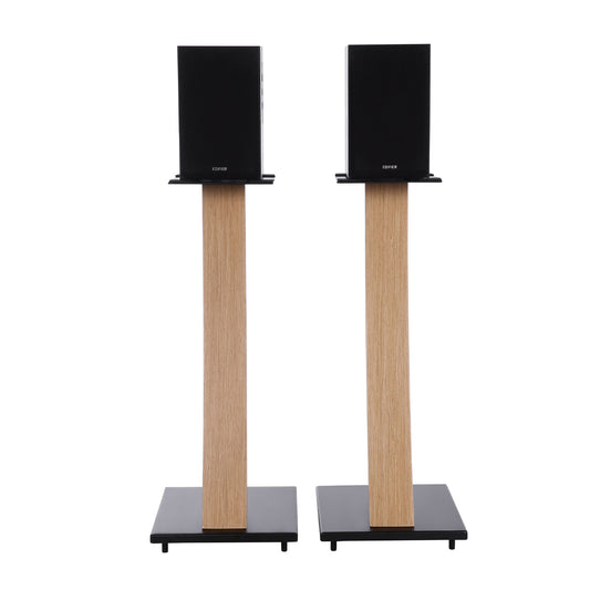 EXIMUS One Pair Fixed Height Universal Speaker Floor Stands with Real Wood - Oak - 290 Series